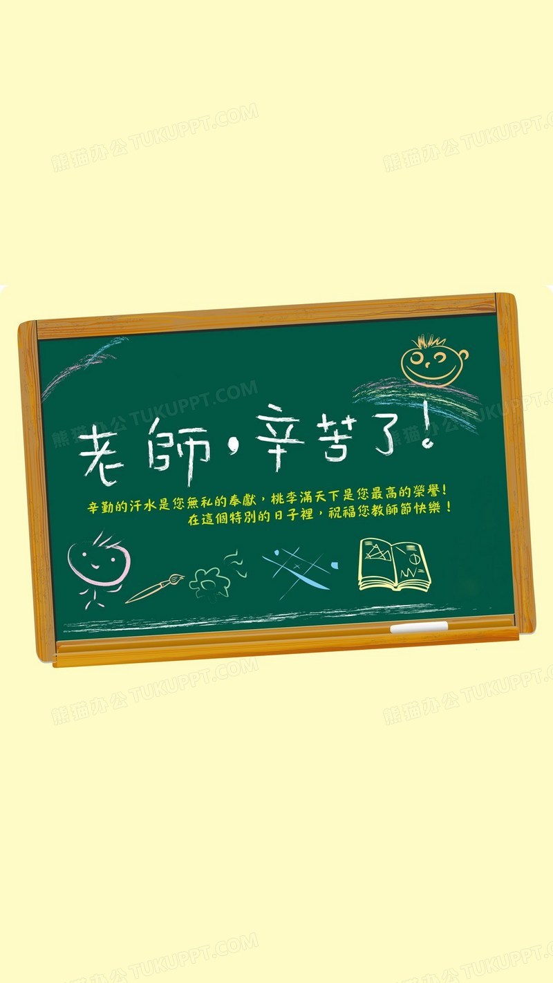 本作品内容为教师节黑板H5背景, 格式为 jpg, 图片尺寸为1080 x 1920, 作品中背景图片无需修改, 源文件无水印,可以直接使用, 欢迎使用熊猫办公。 如认为平台内容涉嫌侵权,可通过邮件:tousu@tukuppt.com提出书面通知,我们将及时处理。