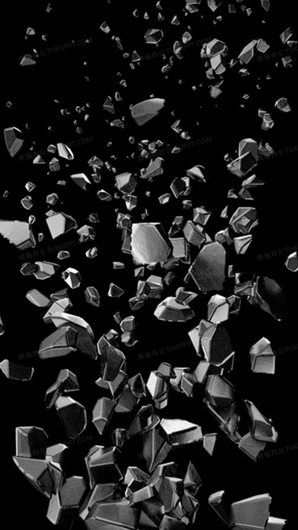 本作品内容为大气酷黑碎石科技感H5背景, 格式为 jpg, 图片尺寸为1242 x 2208, 作品中背景图片无需修改, 源文件无水印,可以直接使用, 欢迎使用熊猫办公。 如认为平台内容涉嫌侵权,可通过邮件:tousu@tukuppt.com提出书面通知,我们将及时处理。