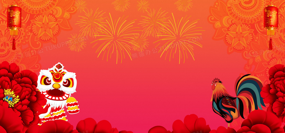 本作品内容为新年元宵红色喜庆舞狮烟花海报背景, 格式为 psd, 图片尺寸为1920 x 898, 作品中背景图片无需修改, 源文件无水印,可以直接使用, 欢迎使用熊猫办公。 如认为平台内容涉嫌侵权,可通过邮件:tousu@tukuppt.com提出书面通知,我们将及时处理。