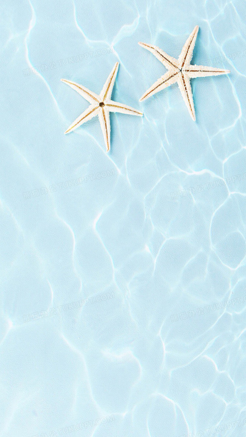本作品内容为简约清爽水波海星背景, 格式为 jpg, 图片尺寸为1080 x 1920, 作品中背景图片无需修改, 源文件无水印,可以直接使用, 欢迎使用熊猫办公。 如认为平台内容涉嫌侵权,可通过邮件:tousu@tukuppt.com提出书面通知,我们将及时处理。