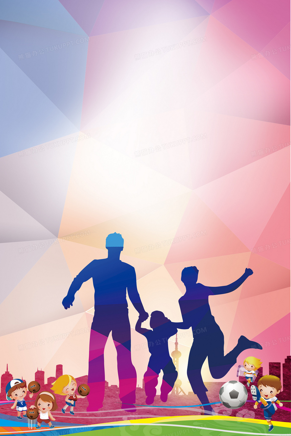 本作品内容为彩色几何亲子运动会背景素材, 格式为 psd, 图片尺寸为3543 x 5315, 作品中背景图片无需修改, 源文件无水印,可以直接使用, 欢迎使用熊猫办公。 如认为平台内容涉嫌侵权,可通过邮件:tousu@tukuppt.com提出书面通知,我们将及时处理。