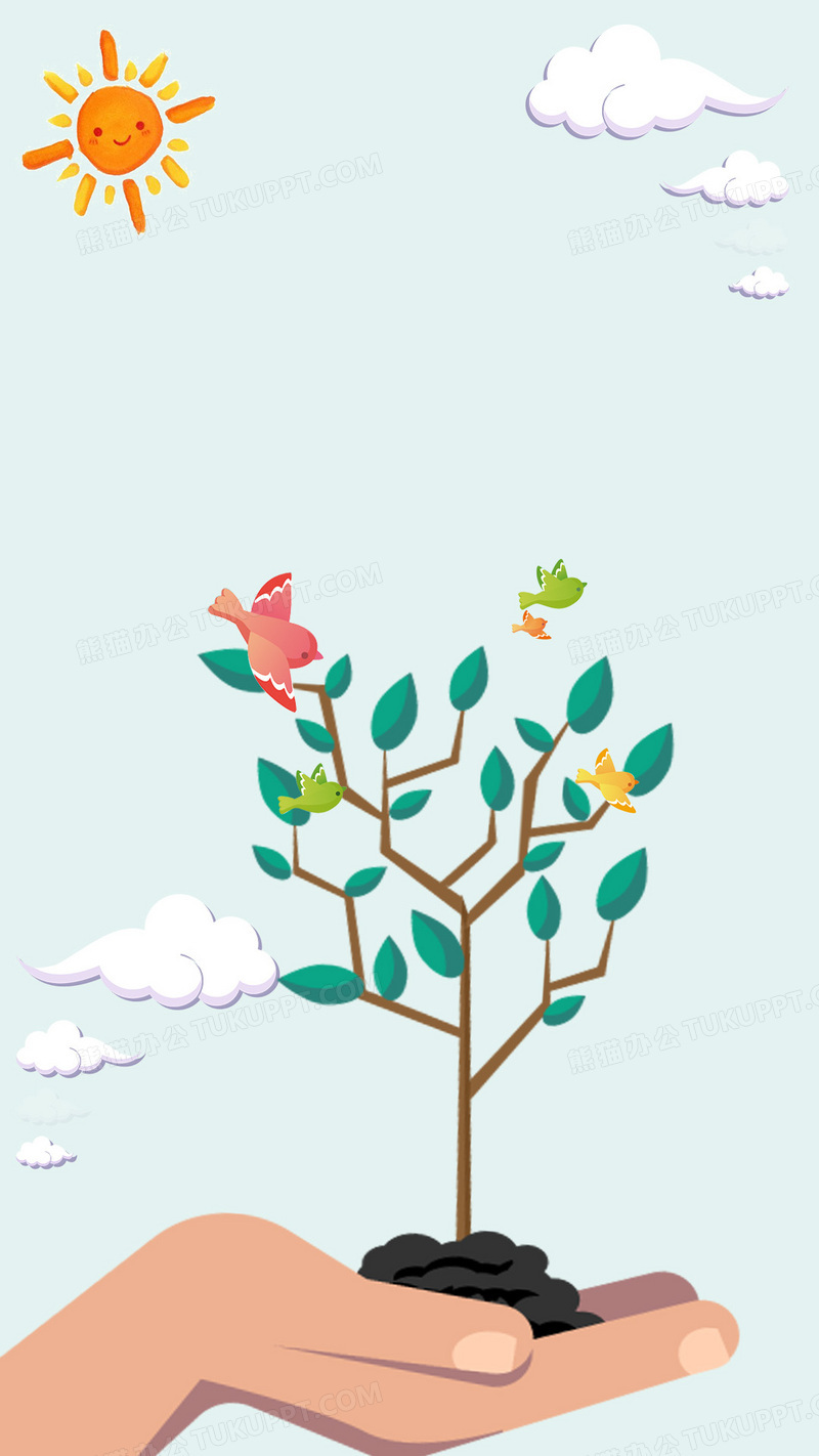 本作品内容为卡通清新绿色植树节活动H5背景, 格式为 psd, 图片尺寸为1080 x 1920, 作品中背景图片无需修改, 源文件无水印,可以直接使用, 欢迎使用熊猫办公。 如认为平台内容涉嫌侵权,可通过邮件:tousu@tukuppt.com提出书面通知,我们将及时处理。