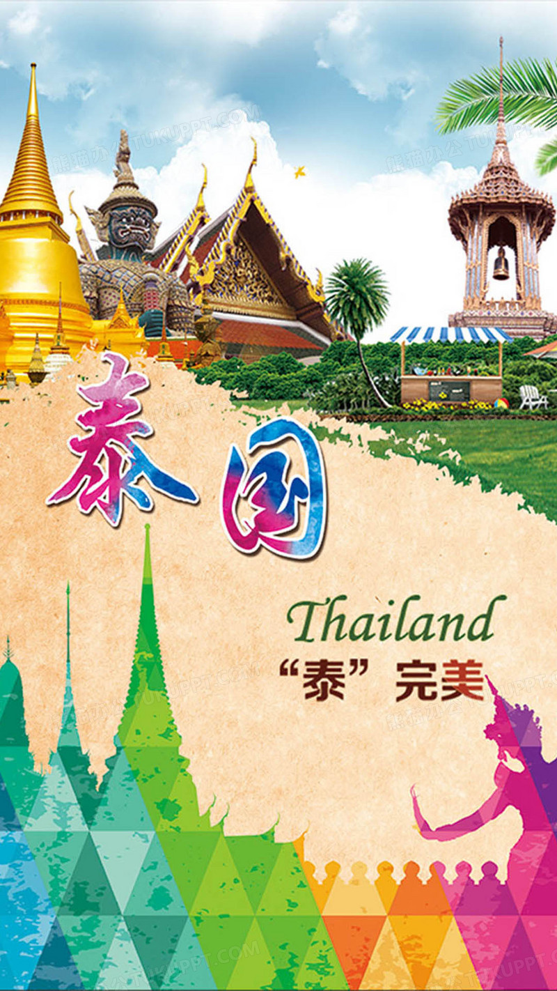本作品内容为多彩泰国旅游背景图, 格式为 jpg, 图片尺寸为1080 x 1920, 作品中背景图片无需修改, 源文件无水印,可以直接使用, 欢迎使用熊猫办公。 如认为平台内容涉嫌侵权,可通过邮件:tousu@tukuppt.com提出书面通知,我们将及时处理。