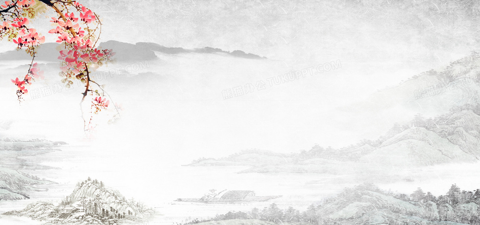 本作品内容为中国风简约水墨山水画, 格式为 psd, 图片尺寸为1920 x 900, 作品中背景图片无需修改, 源文件无水印,可以直接使用, 欢迎使用熊猫办公。 如认为平台内容涉嫌侵权,可通过邮件:tousu@tukuppt.com提出书面通知,我们将及时处理。