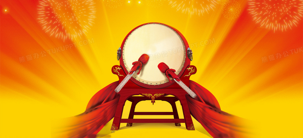 本作品内容为大气中国风喜庆擂鼓背景banner, 格式为 psd, 图片尺寸为1920 x 873, 作品中背景图片无需修改, 源文件无水印,可以直接使用, 欢迎使用熊猫办公。 如认为平台内容涉嫌侵权,可通过邮件:tousu@tukuppt.com提出书面通知,我们将及时处理。
