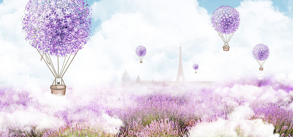 本作品内容为薰衣草紫色蓝天白云背景, 格式为 jpg, 图片尺寸为1920 x 900, 作品中背景图片无需修改, 源文件无水印,可以直接使用, 欢迎使用熊猫办公。 如认为平台内容涉嫌侵权,可通过邮件:tousu@tukuppt.com提出书面通知,我们将及时处理。
