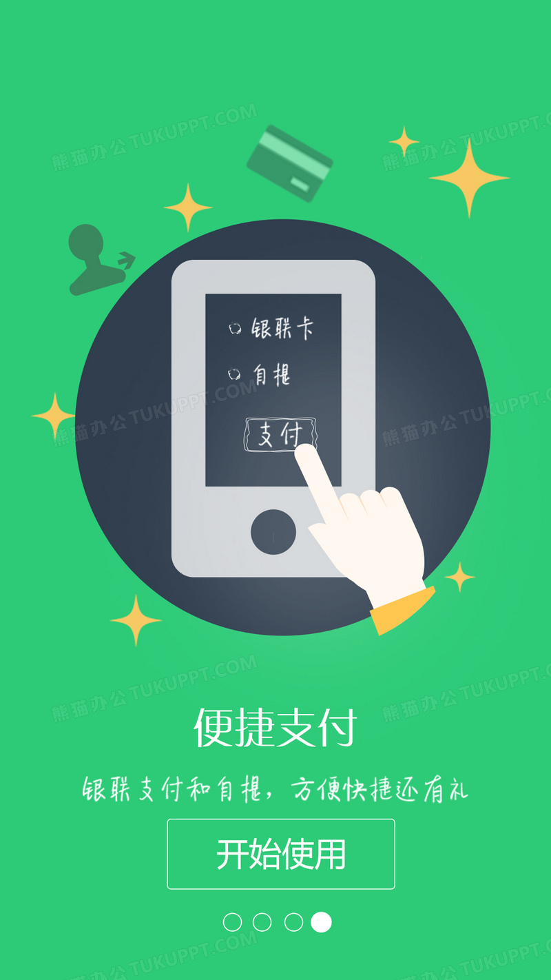 本作品内容为手机支付APP引导页设计psd下载, 格式为 psd, 图片尺寸为1080 x 1920, 作品中背景图片无需修改, 源文件无水印,可以直接使用, 欢迎使用熊猫办公。 如认为平台内容涉嫌侵权,可通过邮件:tousu@tukuppt.com提出书面通知,我们将及时处理。