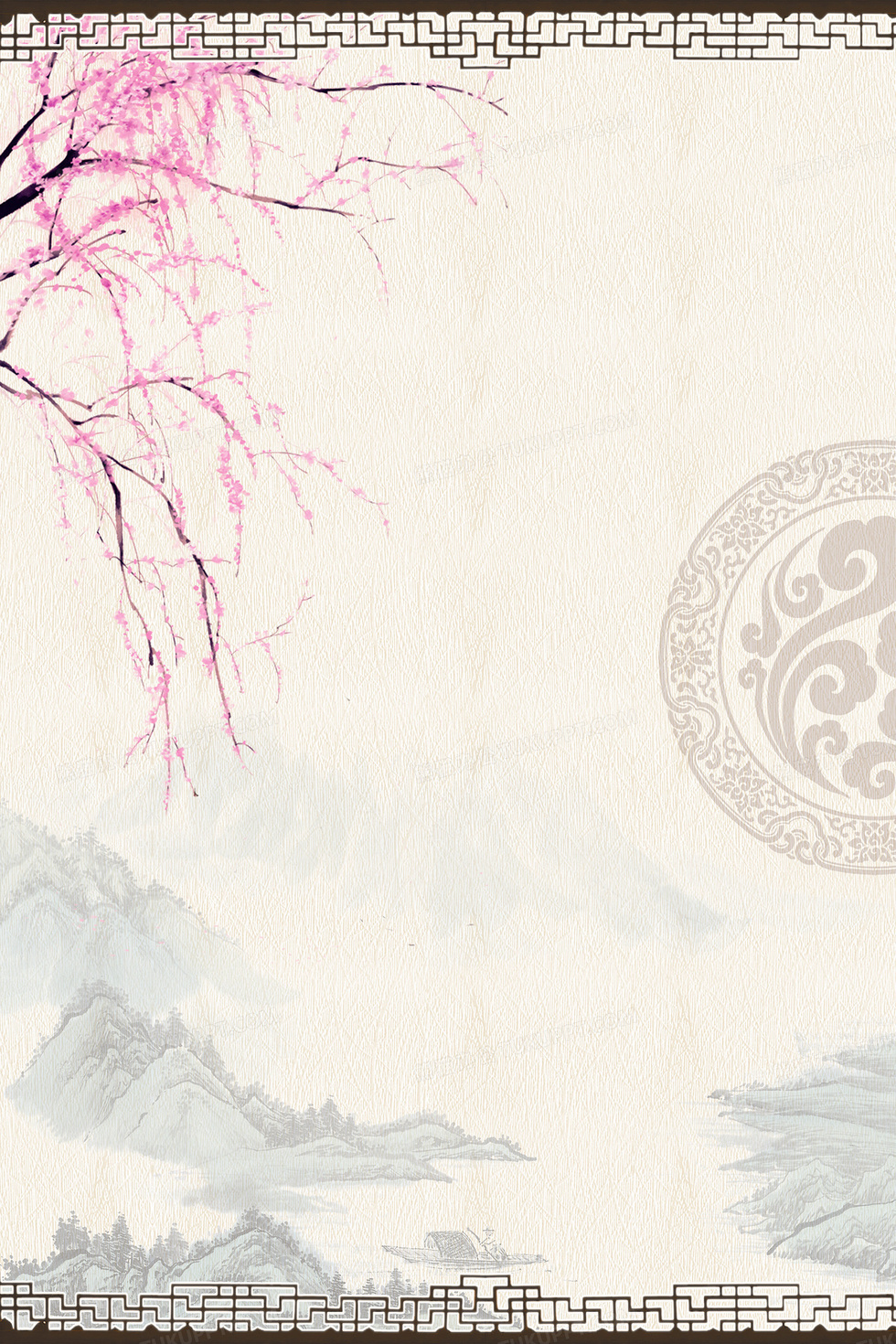本作品内容为中国风水墨山峰桃花背景素材, 格式为 psd, 图片尺寸为3543 x 5315, 作品中背景图片无需修改, 源文件无水印,可以直接使用, 欢迎使用熊猫办公。 如认为平台内容涉嫌侵权,可通过邮件:tousu@tukuppt.com提出书面通知,我们将及时处理。
