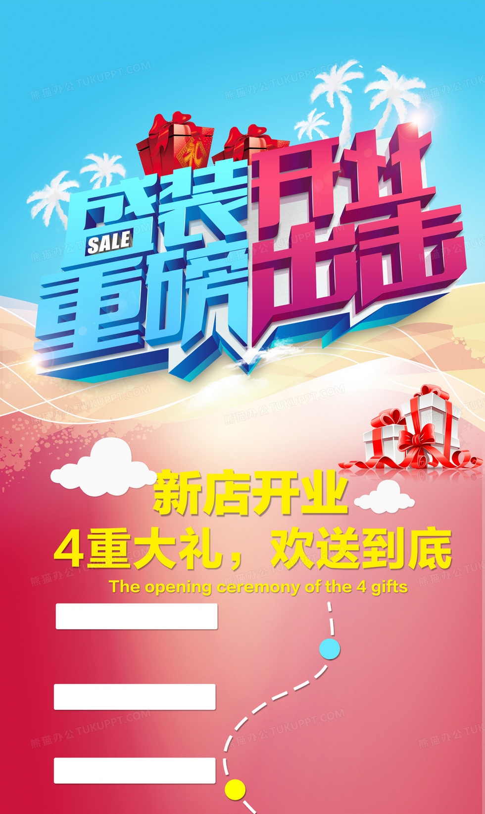 本作品内容为盛装开业服装促销背景素材, 格式为 psd, 图片尺寸为2010 x 3367, 作品中背景图片无需修改, 源文件无水印,可以直接使用, 欢迎使用熊猫办公。 如认为平台内容涉嫌侵权,可通过邮件:tousu@tukuppt.com提出书面通知,我们将及时处理。
