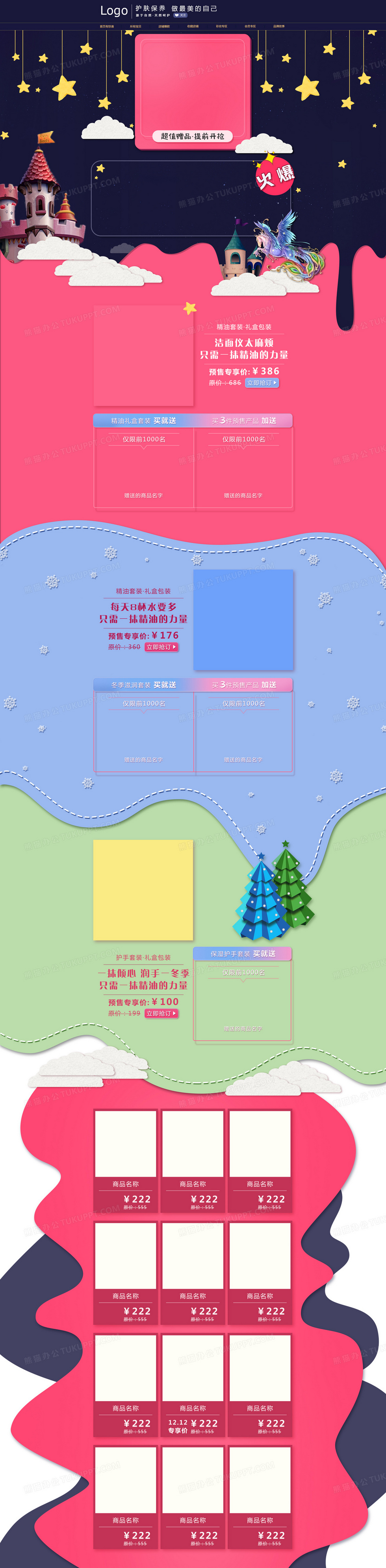 本作品内容为卡通梦幻城堡化妆品店铺首页背景, 格式为 psd, 图片尺寸为1920 x 7810, 作品中背景图片无需修改, 源文件无水印,可以直接使用, 欢迎使用熊猫办公。 如认为平台内容涉嫌侵权,可通过邮件:tousu@tukuppt.com提出书面通知,我们将及时处理。