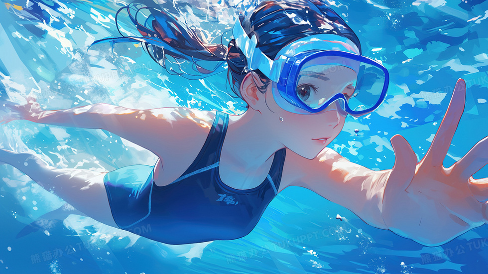 本作品内容为夏日海里潜水的少女插画, 格式为 jpg, 大小3 MB, 图片尺寸为2912 x 1632, 源文件无水印, 欢迎使用熊猫办公。 如认为平台内容涉嫌侵权,可通过邮件:tousu@tukuppt.com提出书面通知,我们将及时处理。