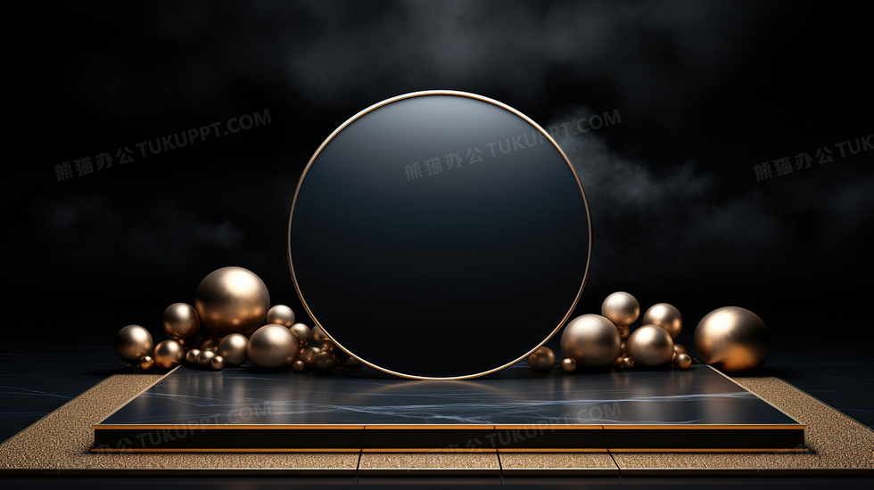 本作品内容为黑金大气商务展台电商背景, 格式为 jpg, 大小2 MB, 图片尺寸为2912 x 1632, 作品中背景图片无需修改, 源文件无水印,可以直接使用, 欢迎使用熊猫办公。 如认为平台内容涉嫌侵权,可通过邮件:tousu@tukuppt.com提出书面通知,我们将及时处理。