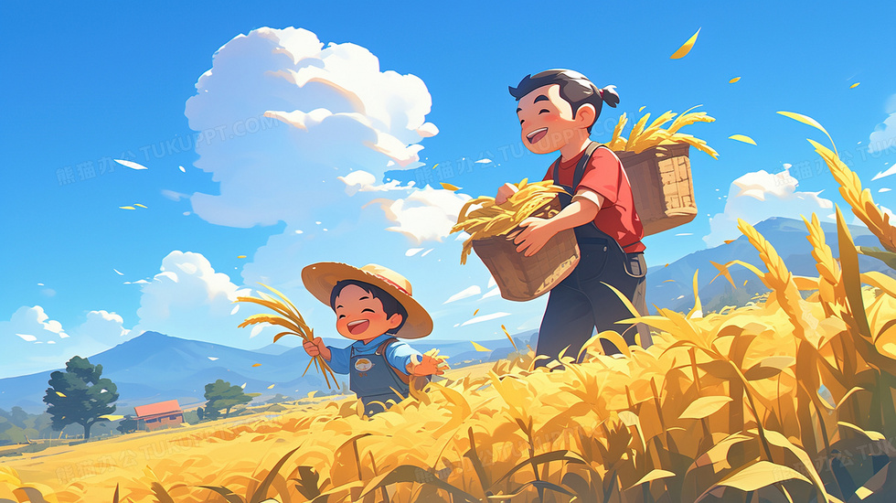 本作品内容为蓝天白云农民丰收喜悦芒种插画, 格式为 jpg, 大小3 MB, 图片尺寸为2912 x 1632, 源文件无水印, 欢迎使用熊猫办公。 如认为平台内容涉嫌侵权,可通过邮件:tousu@tukuppt.com提出书面通知,我们将及时处理。