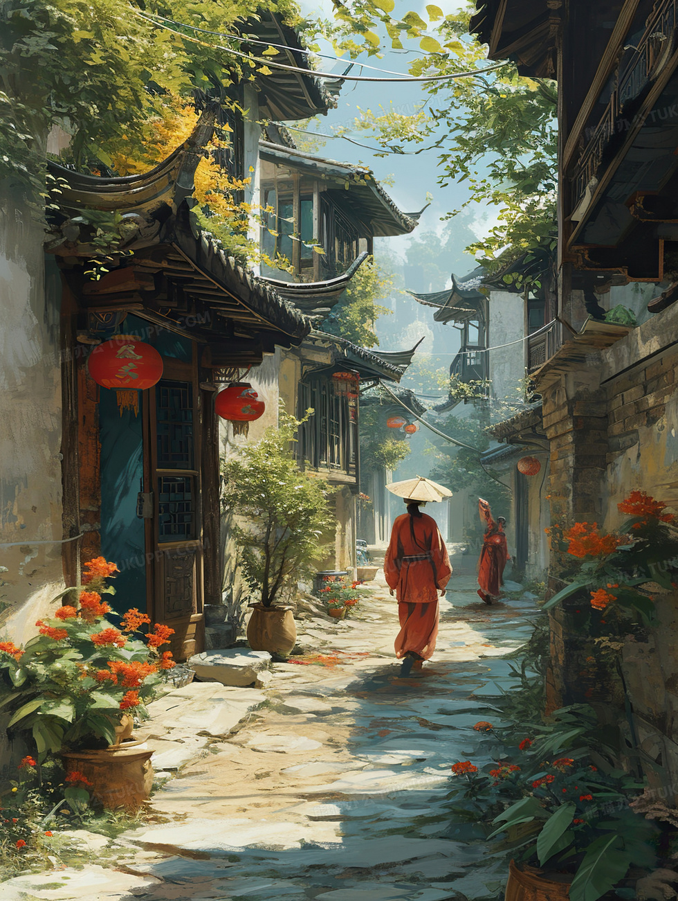本作品内容为中国风古代街道小巷场景插画, 格式为 jpg, 大小4 MB, 图片尺寸为1856 x 2464, 源文件无水印, 欢迎使用熊猫办公。 如认为平台内容涉嫌侵权,可通过邮件:tousu@tukuppt.com提出书面通知,我们将及时处理。
