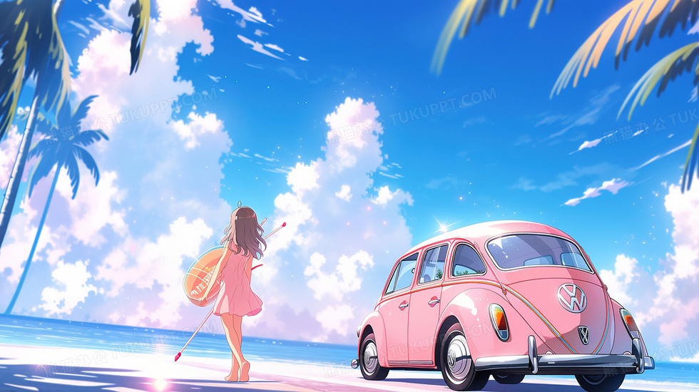 本作品内容为夏日海边的少女与车插画, 格式为 jpg, 大小3 MB, 图片尺寸为2912 x 1632, 源文件无水印, 欢迎使用熊猫办公。 如认为平台内容涉嫌侵权,可通过邮件:tousu@tukuppt.com提出书面通知,我们将及时处理。