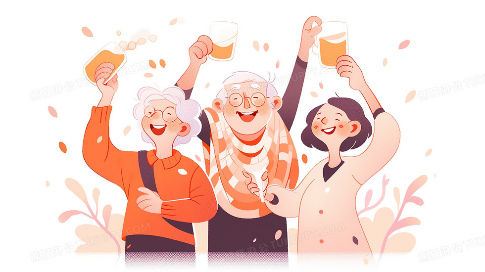 本作品内容为老年人聚会干杯合照插画, 格式为 jpg, 大小2 MB, 图片尺寸为2912 x 1632, 源文件无水印, 欢迎使用熊猫办公。 如认为平台内容涉嫌侵权,可通过邮件:tousu@tukuppt.com提出书面通知,我们将及时处理。