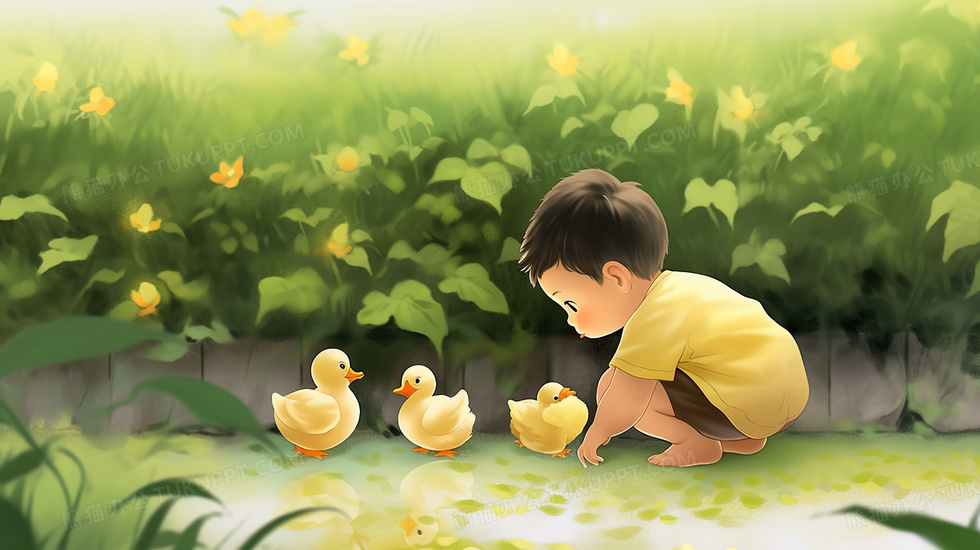 本作品内容为小朋友蹲着和小黄鸭玩耍插画, 格式为 jpg, 大小2 MB, 图片尺寸为2912 x 1632, 源文件无水印, 欢迎使用熊猫办公。 如认为平台内容涉嫌侵权,可通过邮件:tousu@tukuppt.com提出书面通知,我们将及时处理。