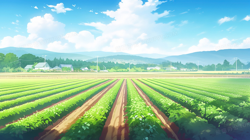 本作品内容为乡村绿色田野庄稼风景插画, 格式为 jpg, 大小3 MB, 图片尺寸为2912 x 1632, 源文件无水印, 欢迎使用熊猫办公。 如认为平台内容涉嫌侵权,可通过邮件:tousu@tukuppt.com提出书面通知,我们将及时处理。