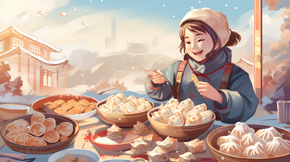 本作品内容为冬至包饺子女孩插画, 格式为 jpg, 大小3 MB, 图片尺寸为2912 x 1632, 源文件无水印, 欢迎使用熊猫办公。 如认为平台内容涉嫌侵权,可通过邮件:tousu@tukuppt.com提出书面通知,我们将及时处理。