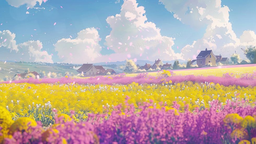 本作品内容为蓝天白云唯美田野花海风景插画, 格式为 jpg, 大小3 MB, 图片尺寸为2912 x 1632, 源文件无水印, 欢迎使用熊猫办公。 如认为平台内容涉嫌侵权,可通过邮件:tousu@tukuppt.com提出书面通知,我们将及时处理。