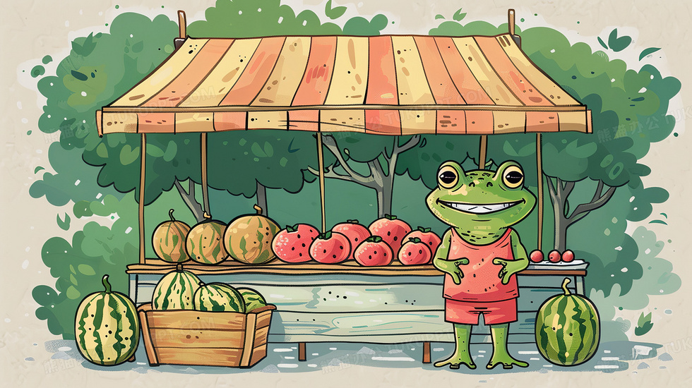 本作品内容为夏天青蛙摆摊卡通插画, 格式为 jpg, 大小3 MB, 图片尺寸为2912 x 1632, 源文件无水印, 欢迎使用熊猫办公。 如认为平台内容涉嫌侵权,可通过邮件:tousu@tukuppt.com提出书面通知,我们将及时处理。