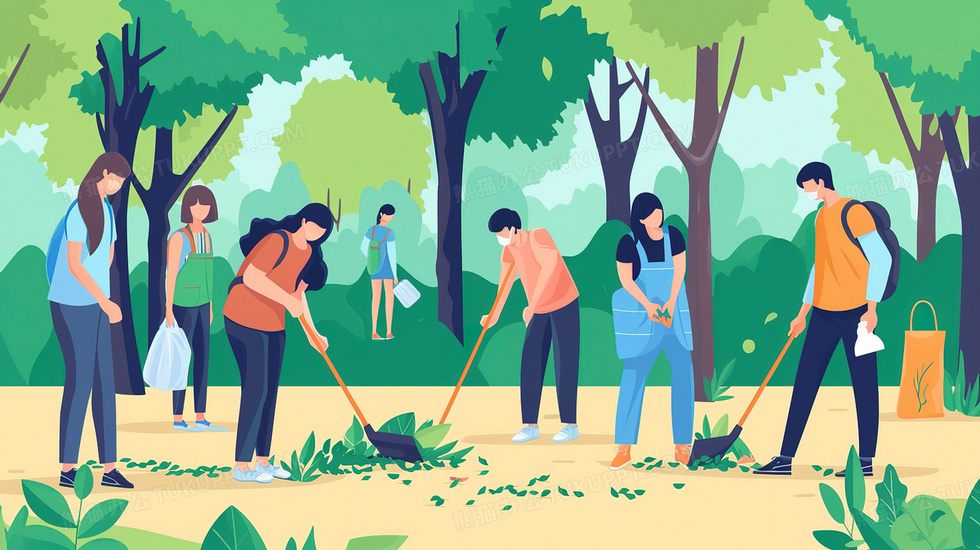 本作品内容为一组人在森林公园里劳动插画, 格式为 jpg, 大小2 MB, 图片尺寸为2912 x 1632, 源文件无水印, 欢迎使用熊猫办公。 如认为平台内容涉嫌侵权,可通过邮件:tousu@tukuppt.com提出书面通知,我们将及时处理。
