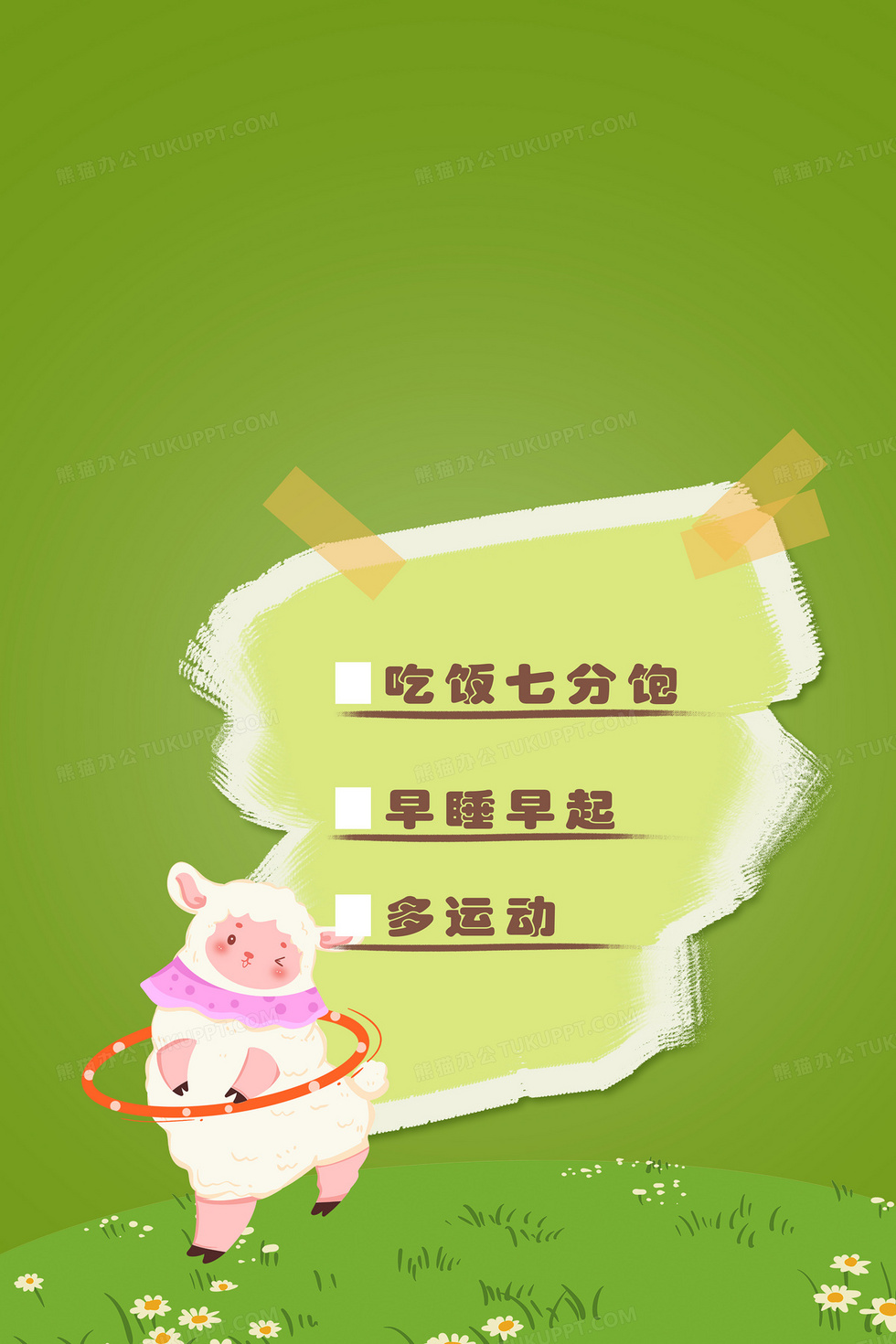 本作品内容为卡通清新简约减肥励志手机壁纸背景, 格式为 psd, 大小12 MB, 图片尺寸为3543 x 5314, 作品中背景图片无需修改, 源文件无水印,可以直接使用, 欢迎使用熊猫办公。 如认为平台内容涉嫌侵权,可通过邮件:tousu@tukuppt.com提出书面通知,我们将及时处理。