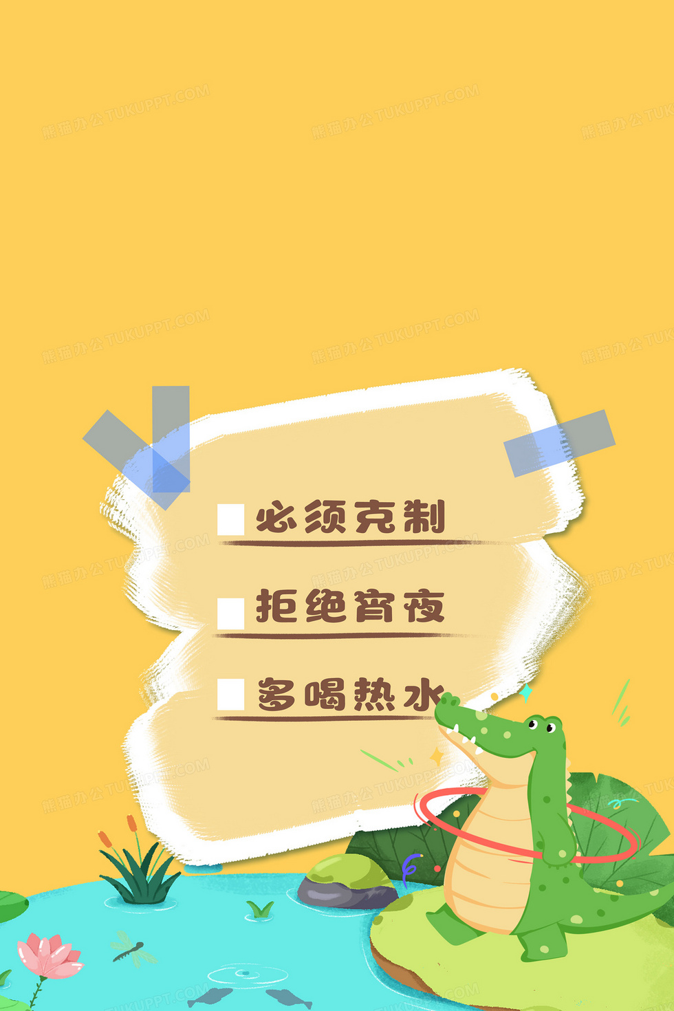 本作品内容为卡通简约减肥励志手机壁纸背景, 格式为 psd, 大小13 MB, 图片尺寸为3543 x 5314, 作品中背景图片无需修改, 源文件无水印,可以直接使用, 欢迎使用熊猫办公。 如认为平台内容涉嫌侵权,可通过邮件:tousu@tukuppt.com提出书面通知,我们将及时处理。