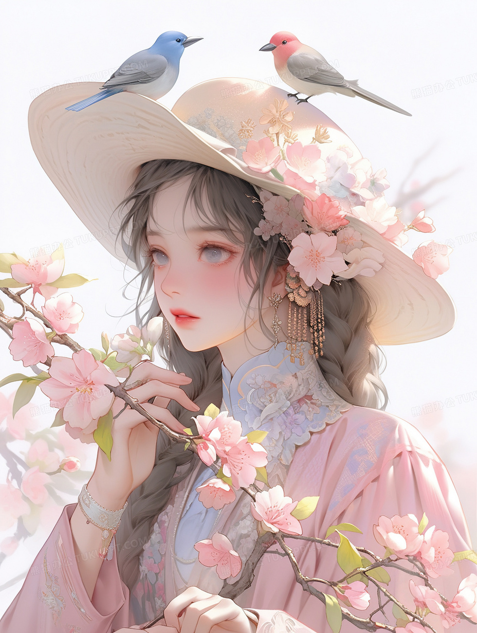 本作品内容为粉色戴帽子中式国风少女插画, 格式为 jpg, 大小3 MB, 图片尺寸为1856 x 2464, 源文件无水印, 欢迎使用熊猫办公。 如认为平台内容涉嫌侵权,可通过邮件:tousu@tukuppt.com提出书面通知,我们将及时处理。