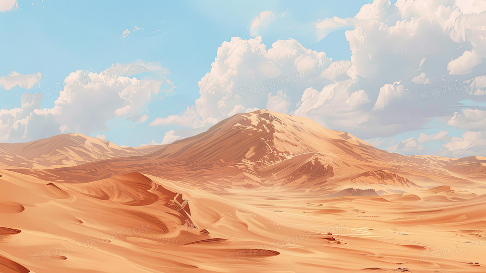 本作品内容为卡通金色沙漠风光背景, 格式为 jpg, 大小5 MB, 图片尺寸为2912 x 1632, 作品中背景图片无需修改, 源文件无水印,可以直接使用, 欢迎使用熊猫办公。 如认为平台内容涉嫌侵权,可通过邮件:tousu@tukuppt.com提出书面通知,我们将及时处理。