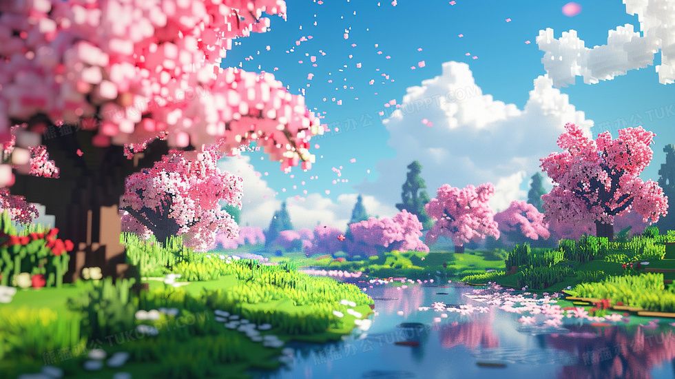 首页 > 插画 > 科技艺术 > 唯美清新 > 春天积木风植物游戏场景插画