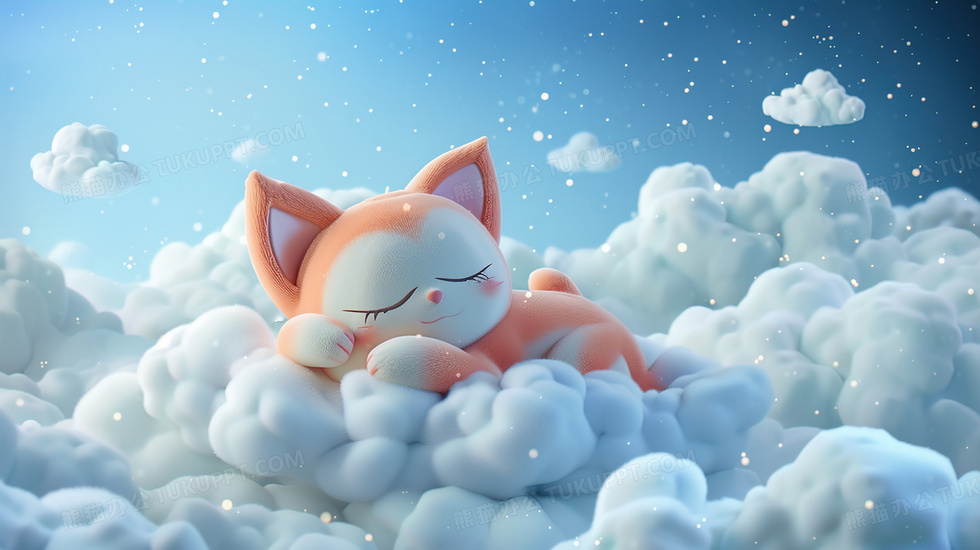 本作品内容为躺在云团上睡觉的3D萌宠插画, 格式为 jpg, 大小2 MB, 图片尺寸为2912 x 1632, 源文件无水印, 欢迎使用熊猫办公。 如认为平台内容涉嫌侵权,可通过邮件:tousu@tukuppt.com提出书面通知,我们将及时处理。