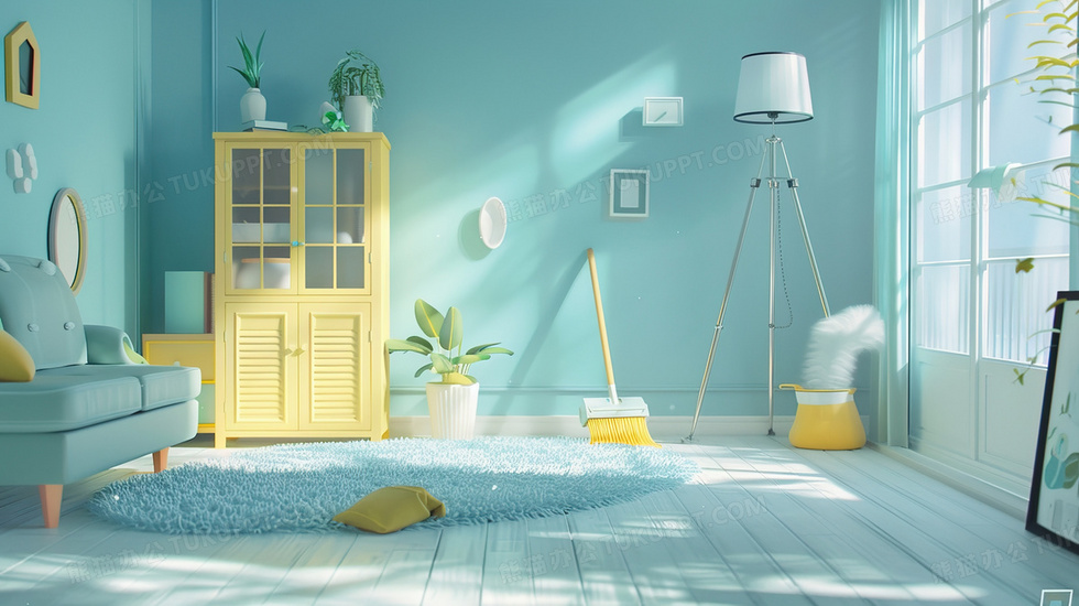 本作品内容为摆放着清洁工具的客厅插画, 格式为 jpg, 大小2 MB, 图片尺寸为2912 x 1632, 源文件无水印, 欢迎使用熊猫办公。 如认为平台内容涉嫌侵权,可通过邮件:tousu@tukuppt.com提出书面通知,我们将及时处理。