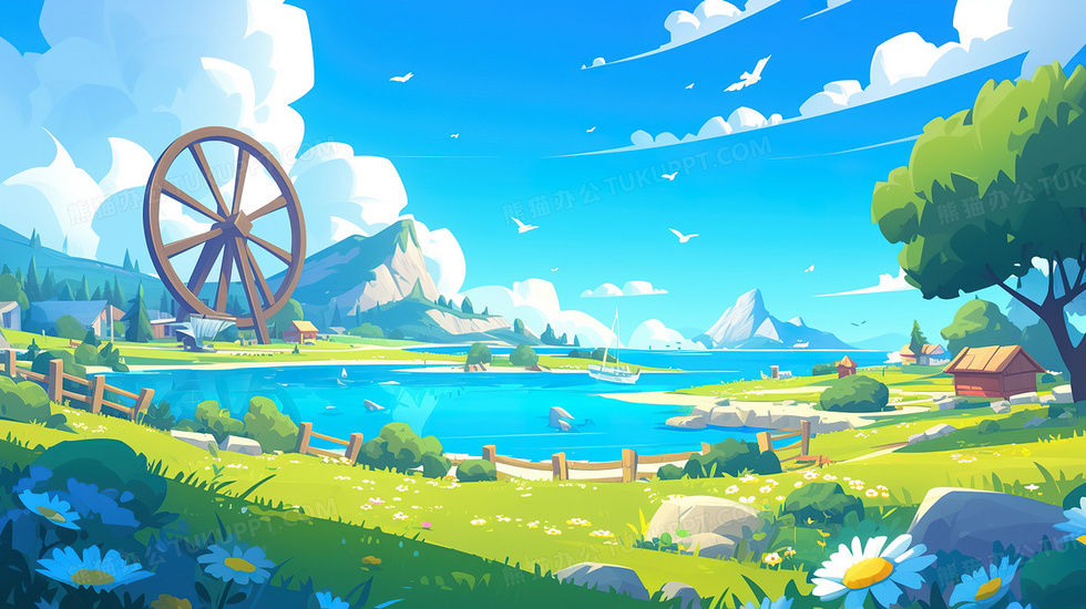 本作品内容为蓝天白云水车小满节气插画, 格式为 jpg, 大小3 MB, 图片尺寸为2912 x 1632, 源文件无水印, 欢迎使用熊猫办公。 如认为平台内容涉嫌侵权,可通过邮件:tousu@tukuppt.com提出书面通知,我们将及时处理。