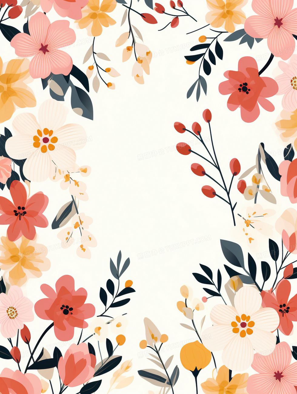 本作品内容为小清新卡通植物花卉边框背景, 格式为 jpg, 大小3 MB, 图片尺寸为1856 x 2464, 作品中背景图片无需修改, 源文件无水印,可以直接使用, 欢迎使用熊猫办公。 如认为平台内容涉嫌侵权,可通过邮件:tousu@tukuppt.com提出书面通知,我们将及时处理。