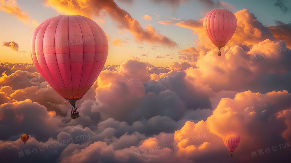 本作品内容为粉色云层里的热气球插画, 格式为 jpg, 大小2 MB, 图片尺寸为2912 x 1632, 源文件无水印, 欢迎使用熊猫办公。 如认为平台内容涉嫌侵权,可通过邮件:tousu@tukuppt.com提出书面通知,我们将及时处理。
