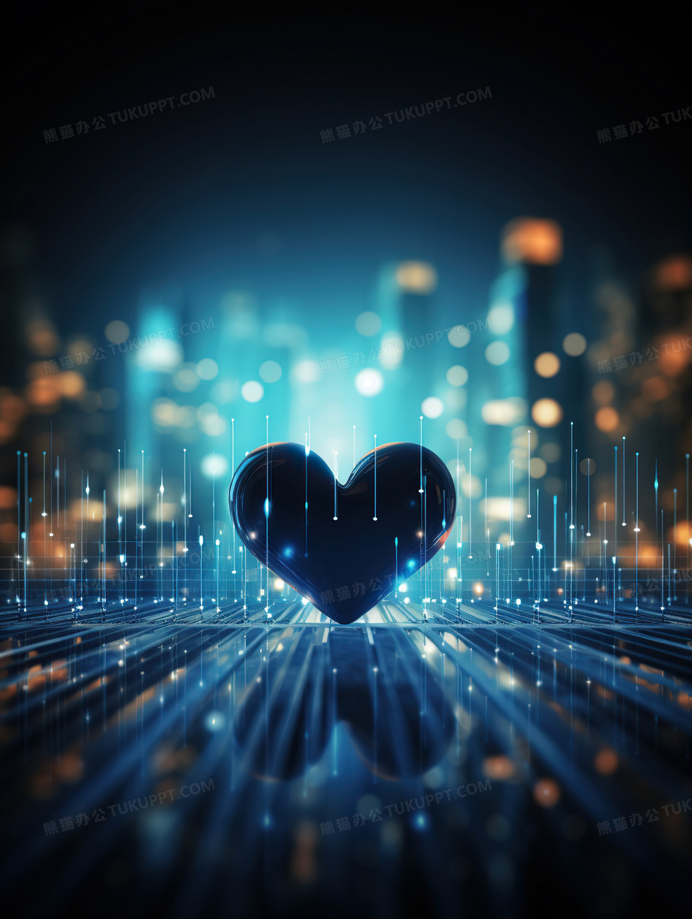 本作品内容为蓝色科技风格爱心背景, 格式为 jpg, 大小2 MB, 图片尺寸为1856 x 2464, 作品中背景图片无需修改, 源文件无水印,可以直接使用, 欢迎使用熊猫办公。 如认为平台内容涉嫌侵权,可通过邮件:tousu@tukuppt.com提出书面通知,我们将及时处理。