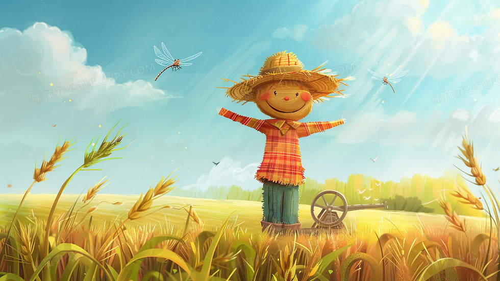 本作品内容为田野里的稻草人水车插画, 格式为 jpg, 大小4 MB, 图片尺寸为2912 x 1632, 源文件无水印, 欢迎使用熊猫办公。 如认为平台内容涉嫌侵权,可通过邮件:tousu@tukuppt.com提出书面通知,我们将及时处理。