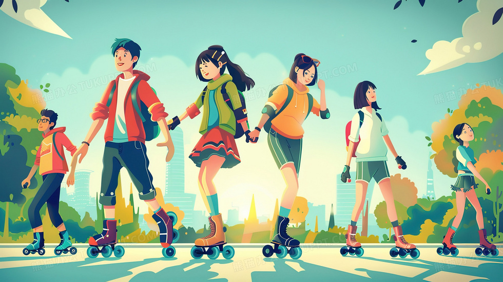 本作品内容为玩轮滑的一群年轻人插画, 格式为 jpg, 大小3 MB, 图片尺寸为2912 x 1632, 源文件无水印, 欢迎使用熊猫办公。 如认为平台内容涉嫌侵权,可通过邮件:tousu@tukuppt.com提出书面通知,我们将及时处理。