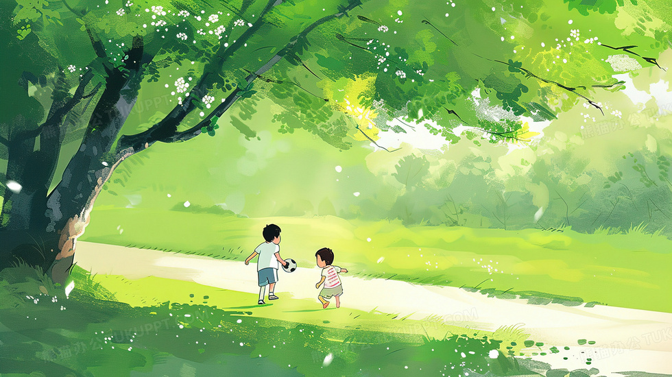 本作品内容为森林草地上踢足球玩耍的儿童插画, 格式为 jpg, 大小4 MB, 图片尺寸为2912 x 1632, 源文件无水印, 欢迎使用熊猫办公。 如认为平台内容涉嫌侵权,可通过邮件:tousu@tukuppt.com提出书面通知,我们将及时处理。