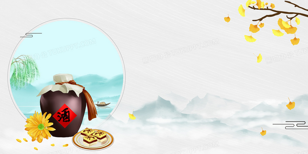 本作品内容为重阳节传统习俗菊花酒简约中国风背景, 格式为 psd, 大小52 MB, 图片尺寸为4724 x 2362, 作品中背景图片无需修改, 源文件无水印,可以直接使用, 欢迎使用熊猫办公。 如认为平台内容涉嫌侵权,可通过邮件:tousu@tukuppt.com提出书面通知,我们将及时处理。