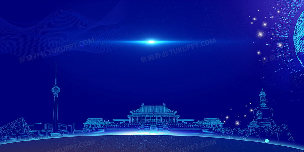 本作品内容为蓝色大气科技北京建筑线稿背景, 格式为 psd, 大小76 MB, 图片尺寸为7087 x 3543, 作品中背景图片无需修改, 源文件无水印,可以直接使用, 欢迎使用熊猫办公。 如认为平台内容涉嫌侵权,可通过邮件:tousu@tukuppt.com提出书面通知,我们将及时处理。