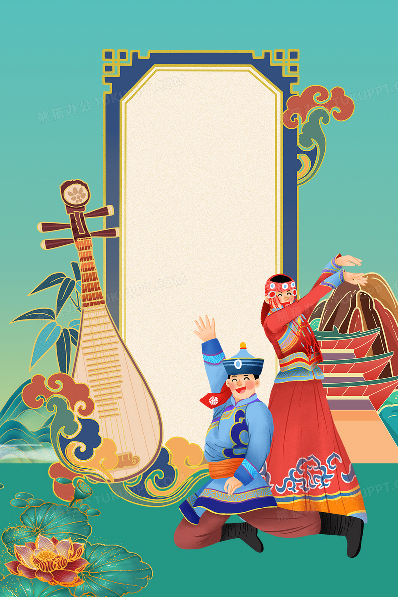 本作品内容为创意质感国潮少数民族舞背景, 格式为 psd, 大小51 MB, 图片尺寸为1181 x 1772, 作品中背景图片无需修改, 源文件无水印,可以直接使用, 欢迎使用熊猫办公。 如认为平台内容涉嫌侵权,可通过邮件:tousu@tukuppt.com提出书面通知,我们将及时处理。