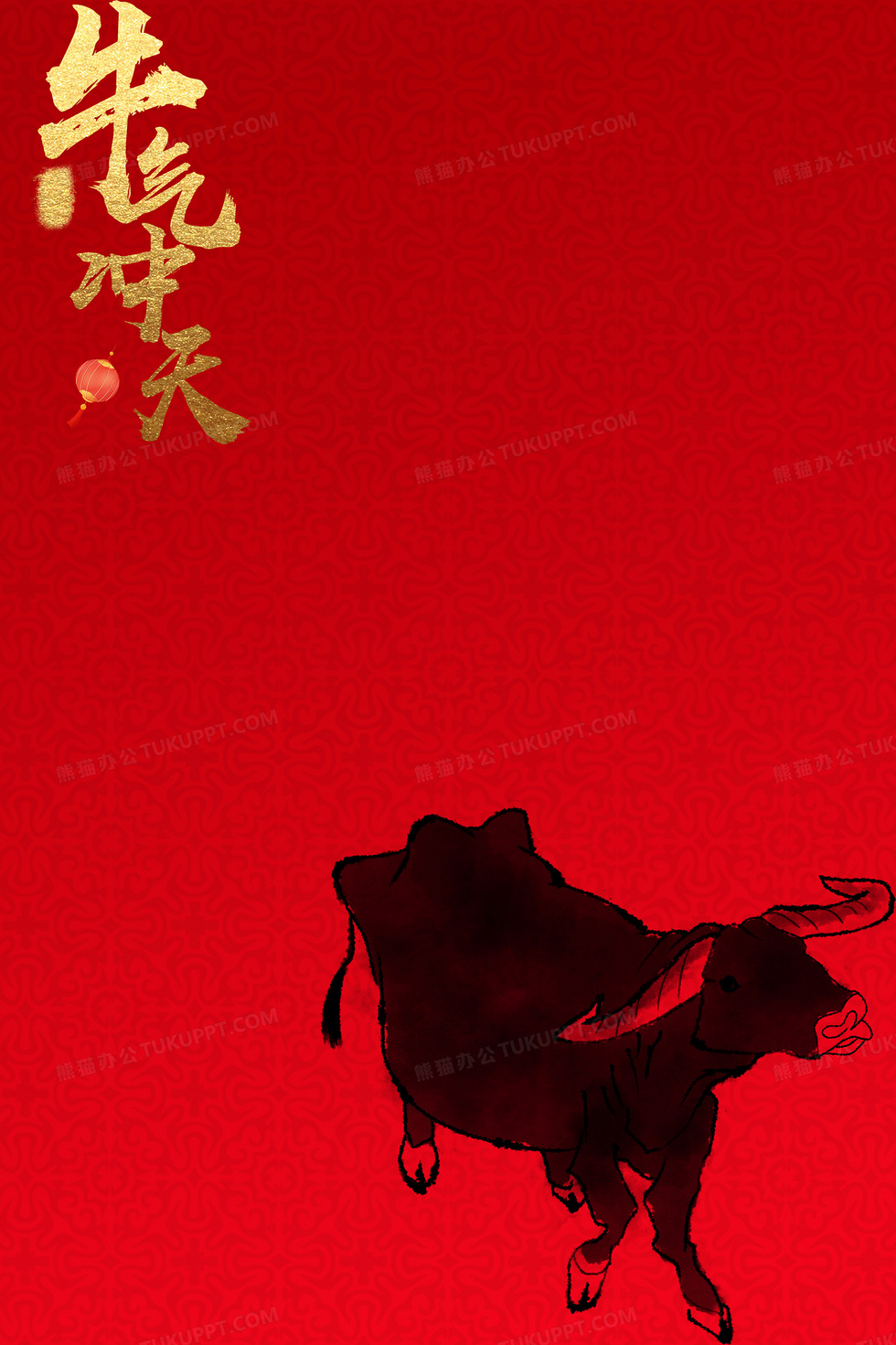 本作品内容为红色简约2021年牛气冲天牛年背景设计, 格式为 psd, 大小96 MB, 图片尺寸为3543 x 5316, 作品中背景图片无需修改, 源文件无水印,可以直接使用, 欢迎使用熊猫办公。 如认为平台内容涉嫌侵权,可通过邮件:tousu@tukuppt.com提出书面通知,我们将及时处理。