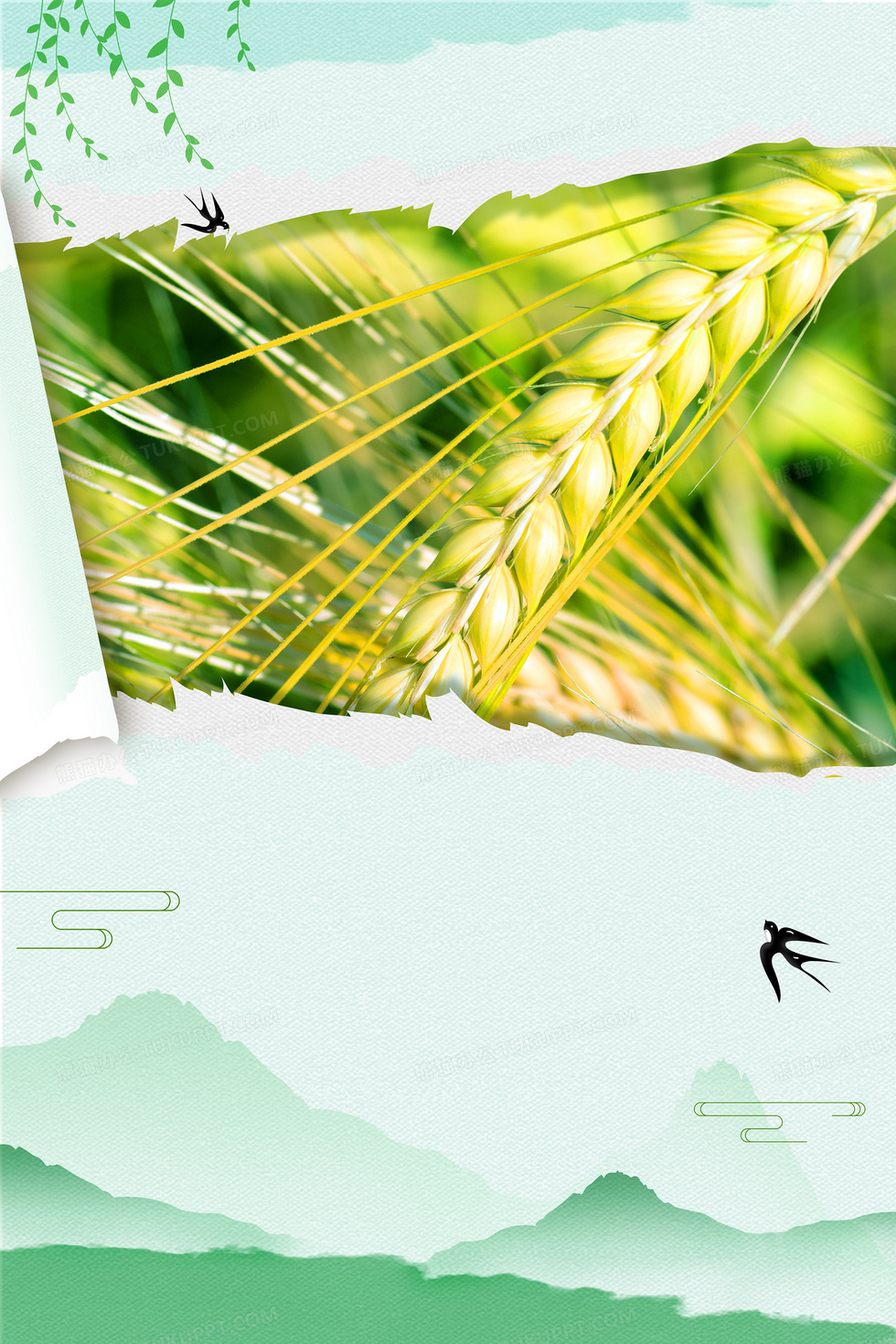 本作品内容为二十四节气芒种清新中国风麦穗背景, 格式为 psd, 大小107 MB, 图片尺寸为3543 x 5315, 作品中背景图片无需修改, 源文件无水印,可以直接使用, 欢迎使用熊猫办公。 如认为平台内容涉嫌侵权,可通过邮件:tousu@tukuppt.com提出书面通知,我们将及时处理。