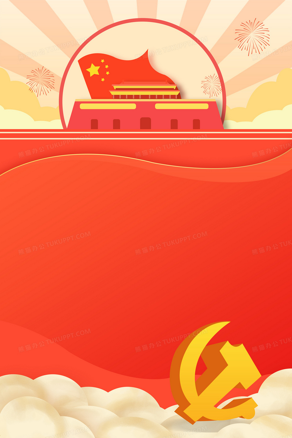 本作品内容为简约党建天安门背景, 格式为 psd, 大小61 MB, 图片尺寸为3543 x 5315, 作品中背景图片无需修改, 源文件无水印,可以直接使用, 欢迎使用熊猫办公。 如认为平台内容涉嫌侵权,可通过邮件:tousu@tukuppt.com提出书面通知,我们将及时处理。