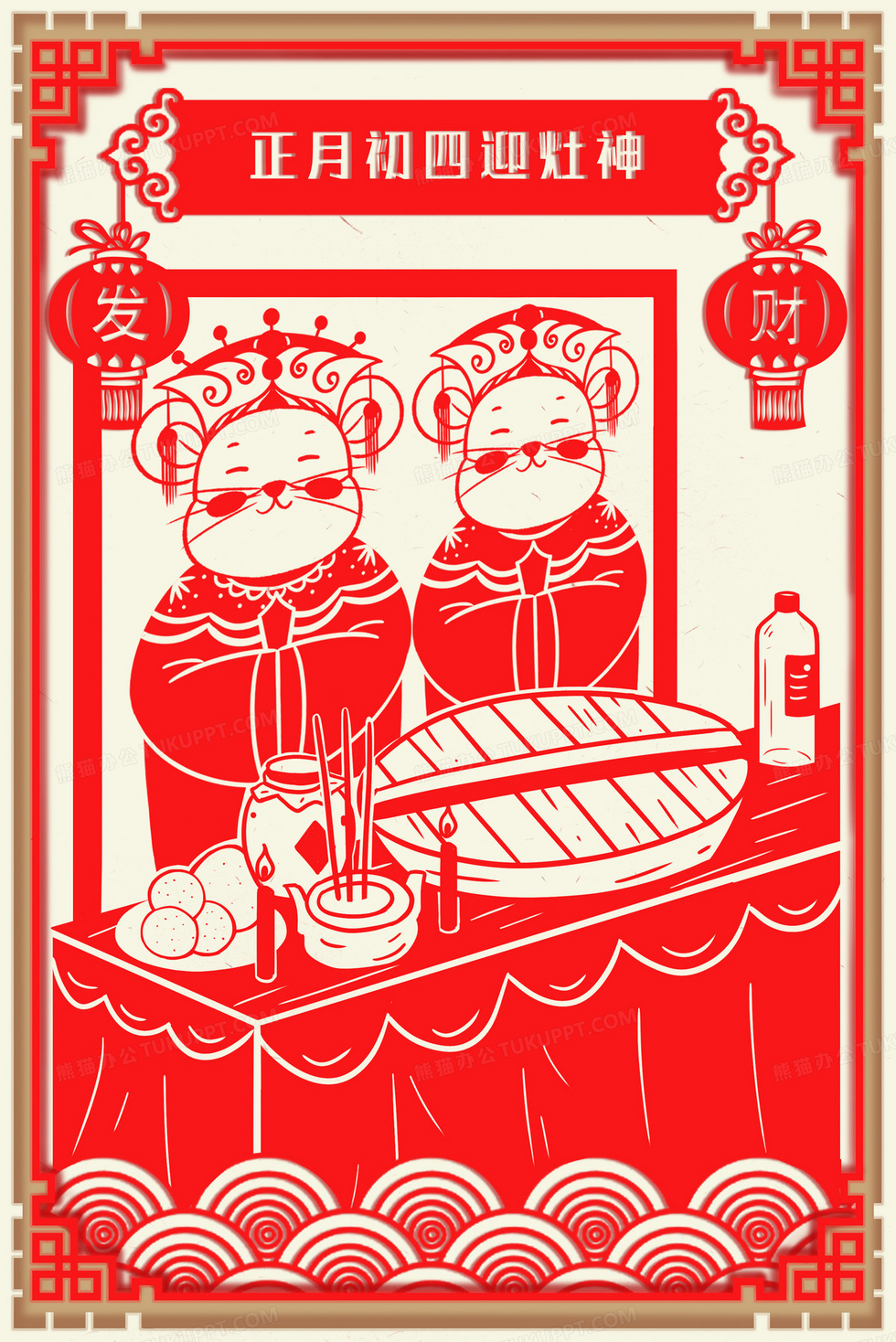 本作品内容为鼠年手绘迎灶神剪纸风插画背景, 格式为 psd, 大小10 MB, 图片尺寸为2343 x 3508, 作品中背景图片无需修改, 源文件无水印,可以直接使用, 欢迎使用熊猫办公。 如认为平台内容涉嫌侵权,可通过邮件:tousu@tukuppt.com提出书面通知,我们将及时处理。