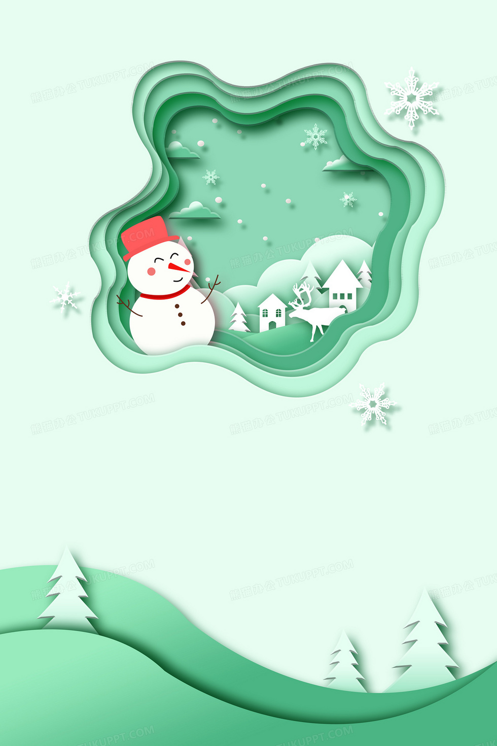 本作品内容为冬季小清新剪纸风雪人背景, 格式为 psd, 大小9 MB, 图片尺寸为3543 x 5315, 作品中背景图片无需修改, 源文件无水印,可以直接使用, 欢迎使用熊猫办公。 如认为平台内容涉嫌侵权,可通过邮件:tousu@tukuppt.com提出书面通知,我们将及时处理。