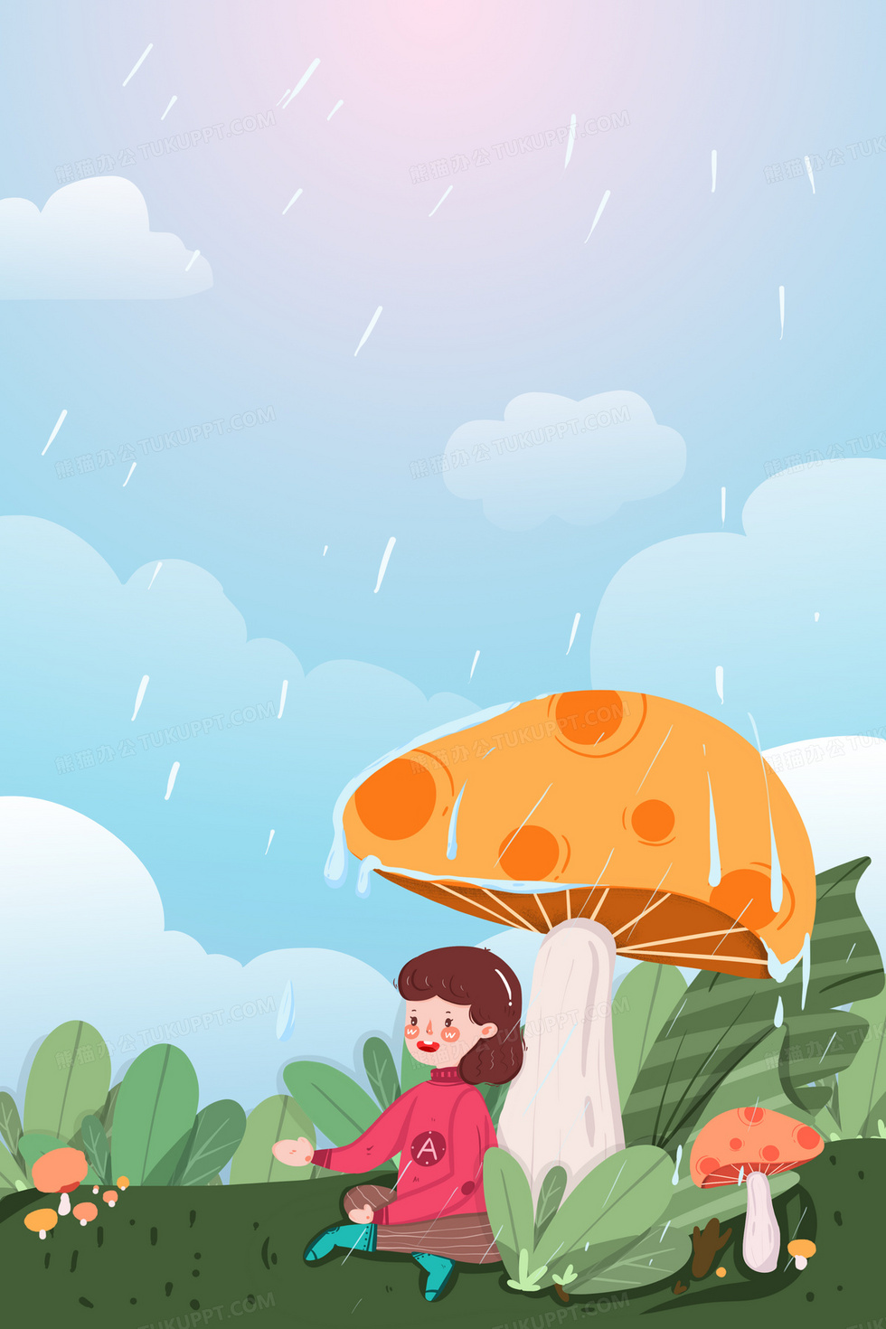 本作品内容为插画风格节气谷雨雨水春天卡通手绘背景, 格式为 psd, 大小11 MB, 图片尺寸为2362 x 3543, 作品中背景图片无需修改, 源文件无水印,可以直接使用, 欢迎使用熊猫办公。 如认为平台内容涉嫌侵权,可通过邮件:tousu@tukuppt.com提出书面通知,我们将及时处理。