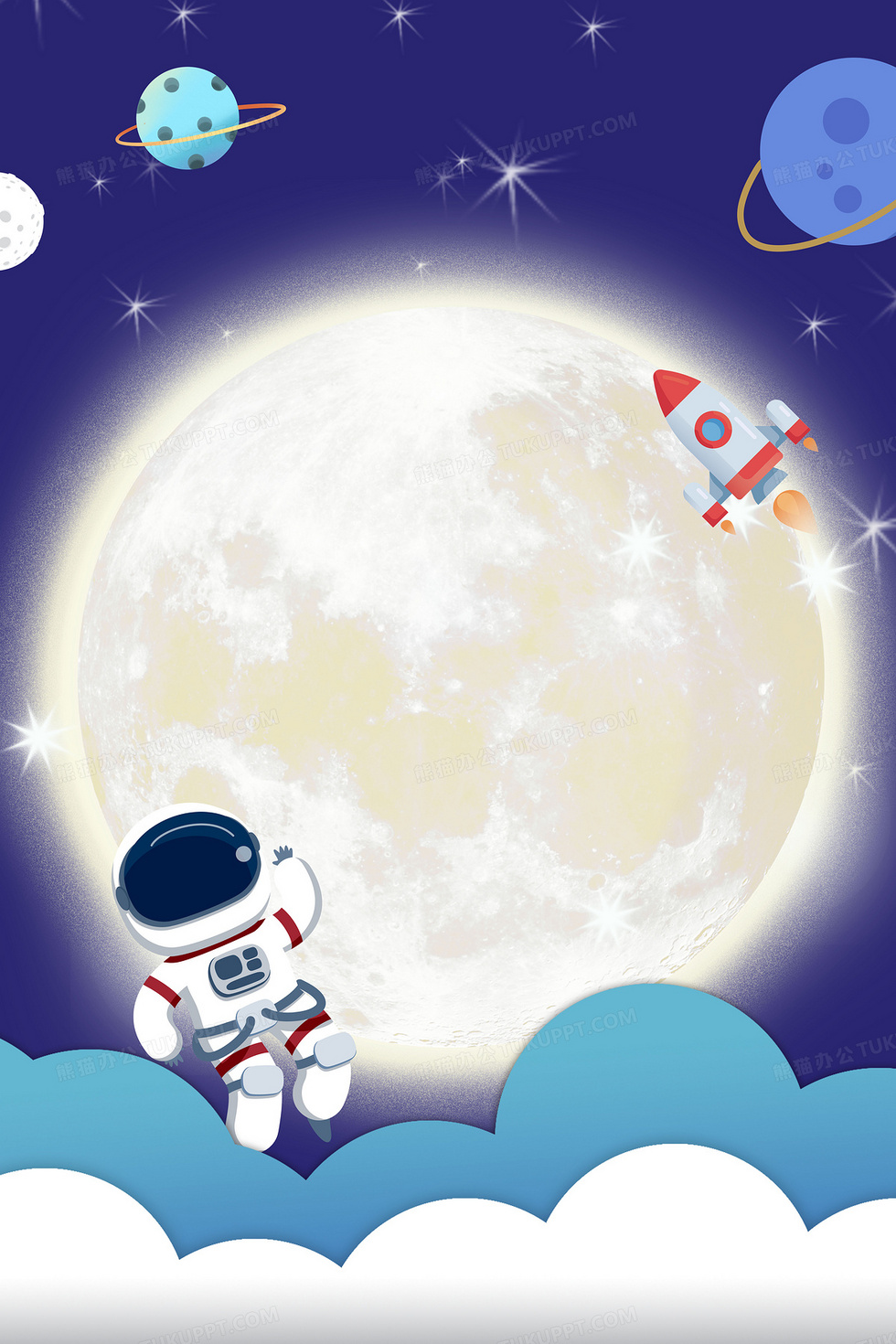 本作品内容为手绘风人类月球日背景, 格式为 psd, 大小58 MB, 图片尺寸为4724 x 7087, 作品中背景图片无需修改, 源文件无水印,可以直接使用, 欢迎使用熊猫办公。 如认为平台内容涉嫌侵权,可通过邮件:tousu@tukuppt.com提出书面通知,我们将及时处理。